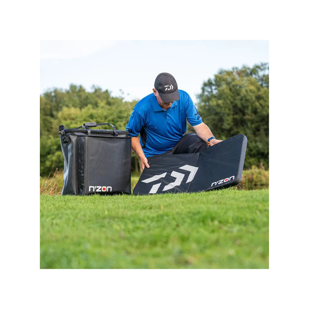 The Daiwa N’ZON Unhooking Fishing Mat is designed to be stored conveniently and neatly into the side pocket of the Nzon EVA Keepnet Bag MK2 available separately.